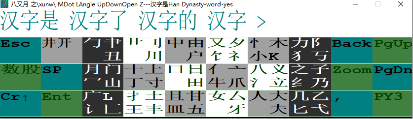 在window下运行,鼠标点击滑行输入和学习中文和英文,包含一行输入,自定义输入,单个中文对应英文,用单个中文的轮廓的分解学习中文和输入中文并且一一对应英文解释